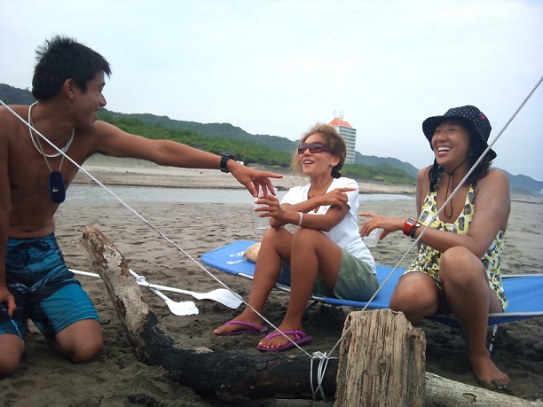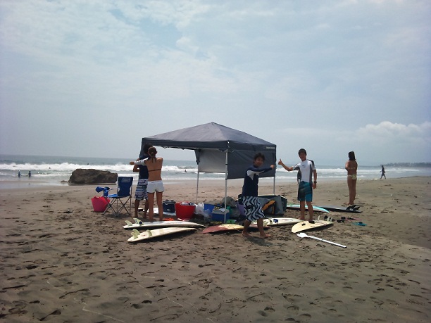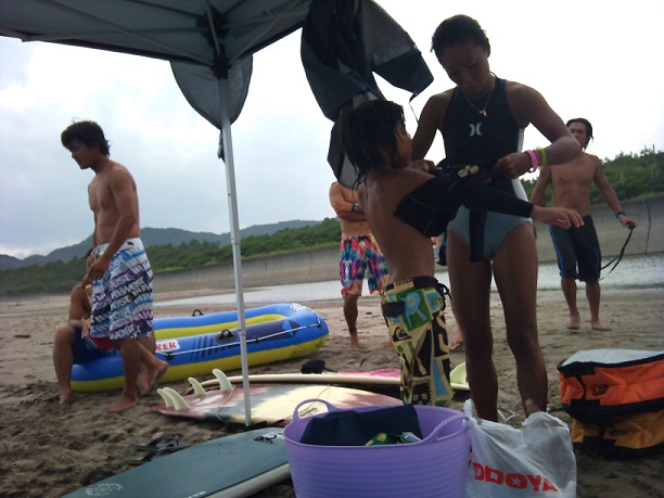 海には同じように近くでテントを張って波乗りしてるグループが一組。