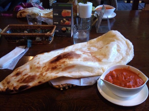 こんなでっかいナンとカレーで950円やっすい(l|iヾω゙):