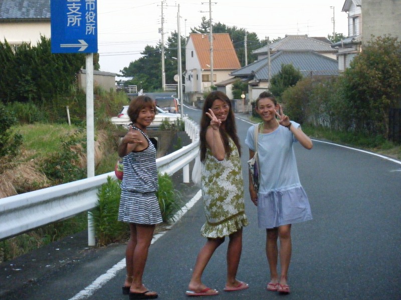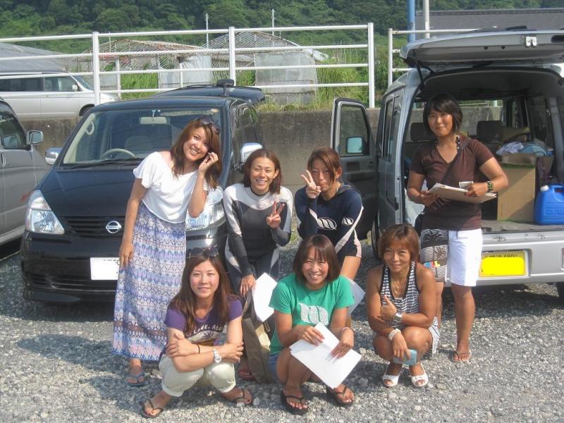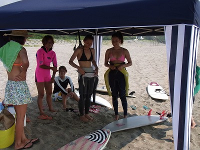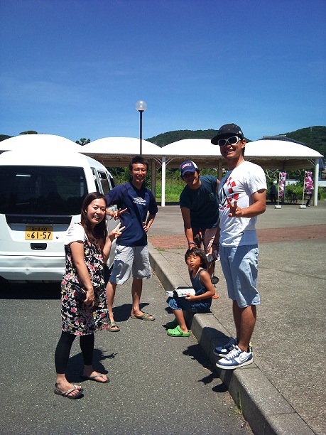 お昼にはきっちゃんも到着して、皆でお店の下でサーフィン。