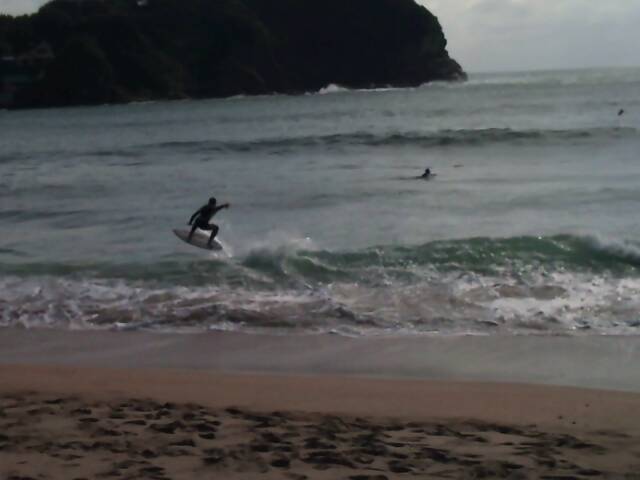 最初あんまりサイズなく、人もいなかったのでサーフィン!