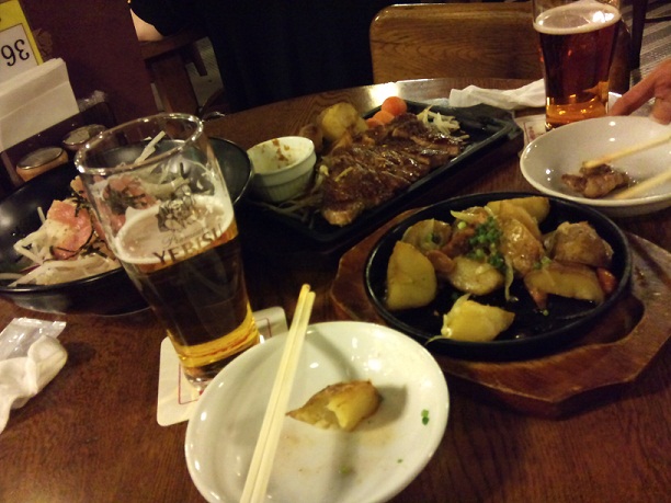 夜の宴はいつも通りうるさく、生ビールが売り切れてしまうほどでした(¬ω¬;A)