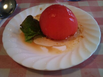 トマトサラダはまるごとのトマトの中にツナマヨ入り。