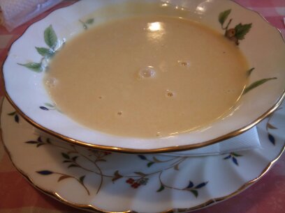 コーンポタージュスープはお皿に並々と注がれていて