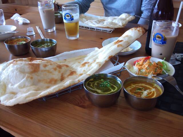 ナンがでかくて食べ放題、カレー2種類、サラダ、ドリンク付で980円。